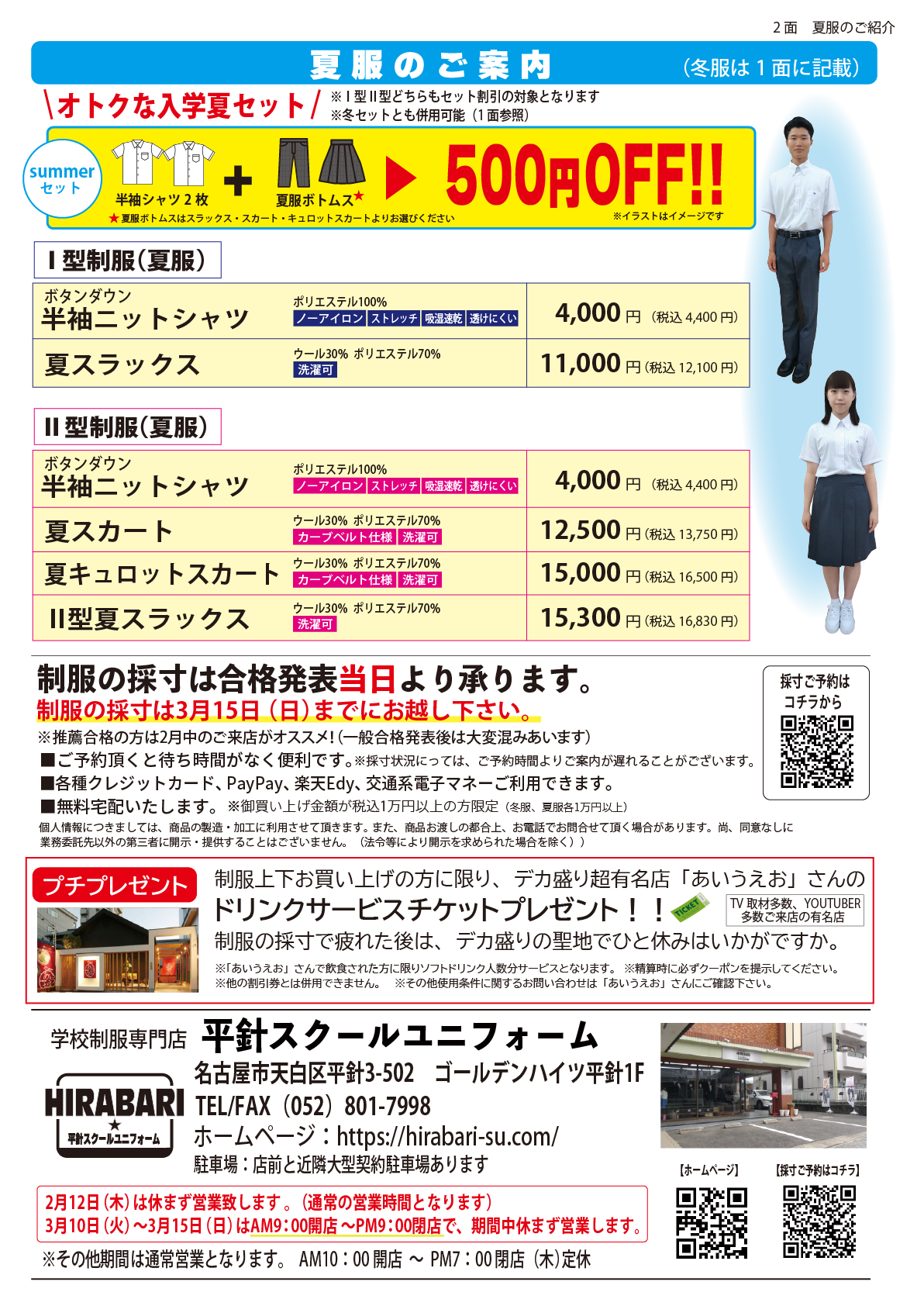 制服のご注文締切日がありますので、ぜひお早めのご来店下さい。
